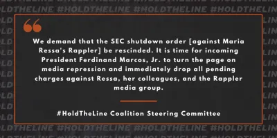 30 June 2022 | Publication Hold the Line Coalition Shutdown order against Rappler must be revoked immediately